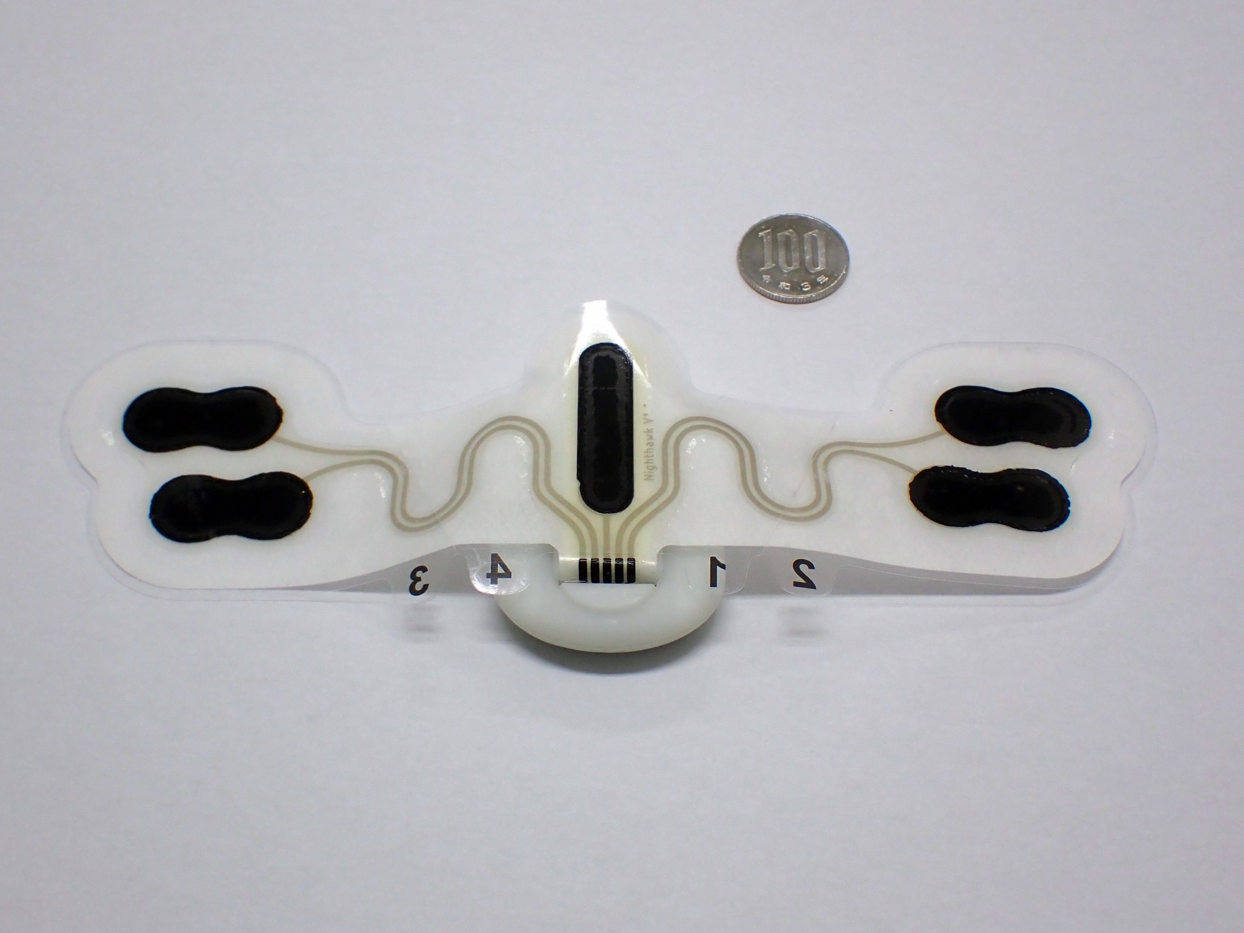 Shin-Etsu’s silicone material adapts itself to the skin and makes it very unlikely for the skin to become irritated, and at the same time, by making the thickness about as thin as a human hair, it becomes soft and flexible to the extent that you do not feel that you are wearing the device.